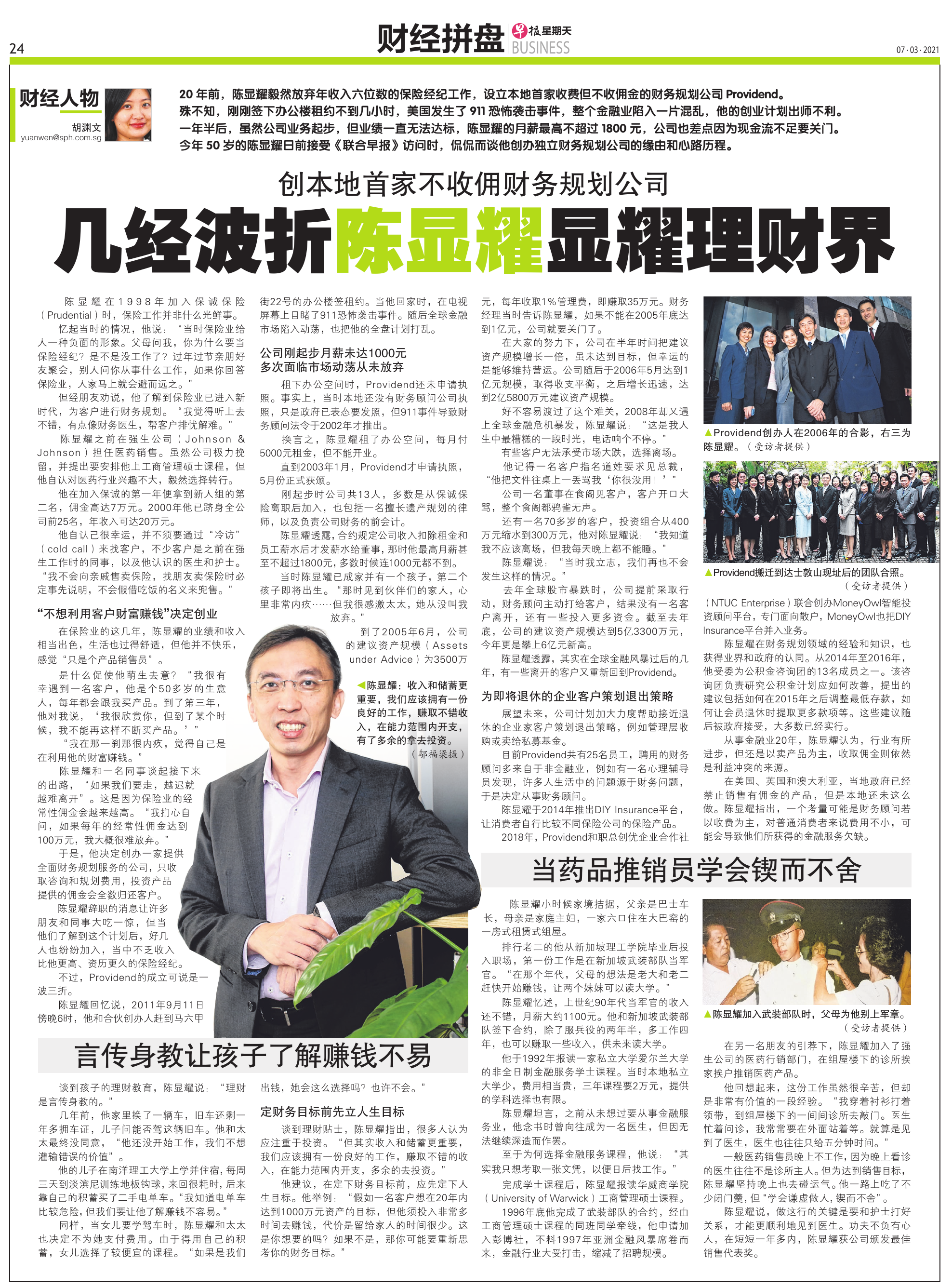 The revelation made Christopher even more determined to pursue true wealth management and he left the company after 6 months when he realised that he could not do what he felt was right. A number of his former colleagues found out what he planned to do, and decided to quit their jobs to join him in his venture. So in 2001, Providend was formed.